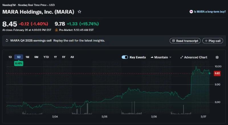 So here's what nobody is talking about with the MARA Q4 numbers. I woke up this morning, did my usual DefiLlama check, and saw the headlines flashing. A staggering $1.7 billion loss. My first thought was, 'Well, that's going to be a bloodbath.' But then I checked the pre-market. Up 15%. This is the kind of disconnect that makes you question everything. The market just decided that a disastrous report on their core business doesn't matter because of a shiny new AI narrative. It's a classic case of narrative over numbers, and it's a trap I've seen too many traders fall into. My friend Marcus Cole often focuses on price action, and while that's valuable, this is a prime example of where you have to look under the hood.