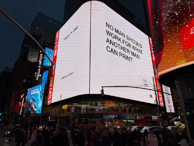 I almost made a mistake this morning. Woke up, checked my feed, and saw it: a massive Bitcoin ad plastered across Times Square with the line, 'Nobody should work for what another person can print'. My DeFi-summer instincts screamed 'full send'. It's the kind of mainstream validation we've been talking about for years. But after getting burned a few times, I've learned to let the euphoria settle and check the charts first. This ad is a powerful narrative driver, but it isn't a trading plan.