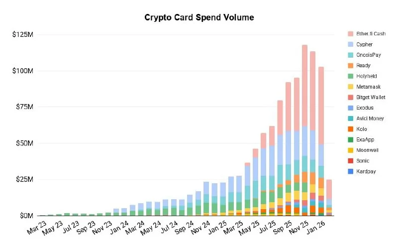 I was topping up my crypto card for my morning coffee this Tuesday when the alert hit my feed: crypto card spending just crossed $100,000,000 a month. Back in 2023, that number was practically zero. My first instinct, hardened by the 2018 crash, was to dismiss it as another vanity metric. But then I pulled up the on-chain data on my second monitor and saw it. This isn't just a headline. It’s real velocity. It’s money actually moving for goods and services, not just looping through DeFi protocols. And for a trader, that’s a signal you can't ignore.
