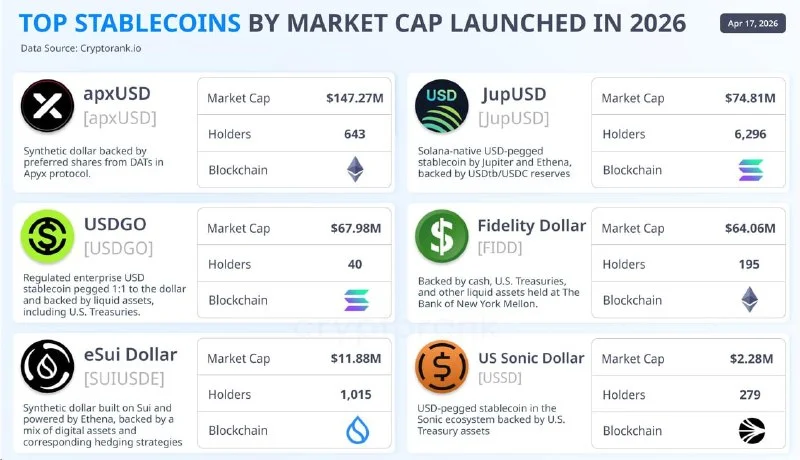 - Total stablecoin market cap: Up nearly 11% since the start of the year, with new entrants capturing over half of that growth.