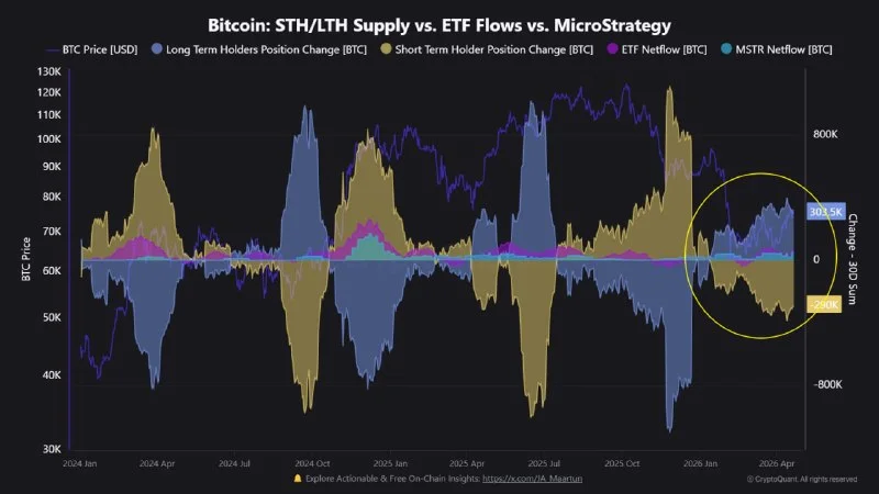 This morning, my dashboard lit up with a number everyone's cheering: 303,000 BTC. That's how much CryptoQuant says long-term holders (LTHs) have scooped up in the last month while short-term holders capitulated. The consensus narrative is simple: the 'smart money' is accumulating. While Marcus Cole is probably looking at this as a clear signal to long BTC to $100k, my on-chain analysis paints a much more cautious, and frankly, concerning picture. This isn't the decentralized strength everyone thinks it is.